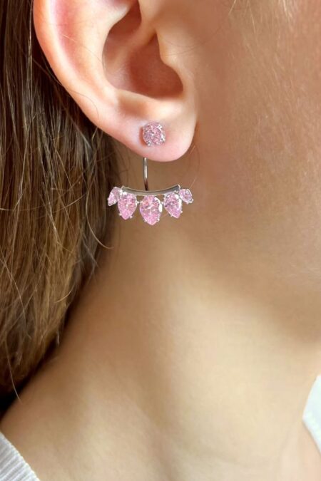 Σκουλαρίκια ear jacket με ροζ κρύσταλλα σε ασημί χρώμα από ορύχαλκο 8.00€ με ΦΠΑ