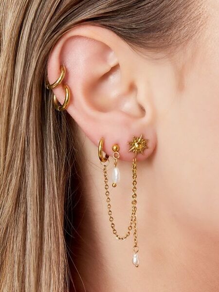 Ατσάλινα σκουλαρίκια με αλυσίδα και πέρλα σε χρυσό χρώμα (1 τεμάχιο) 15.00€ με ΦΠΑ