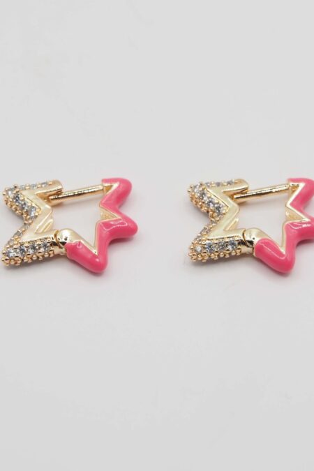 Ατσάλινα Σκουλαρίκια Shiny stars σε χρυσό και φούξια χρώμα με ζιργκόν 9.90€ με ΦΠΑ