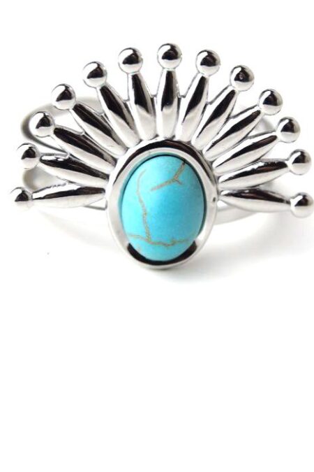 Δαχτυλίδι Victorious σε ασημί χρώμα με τιρκουάζ πέτρα από ατσάλι One size 8.90€ με ΦΠΑ