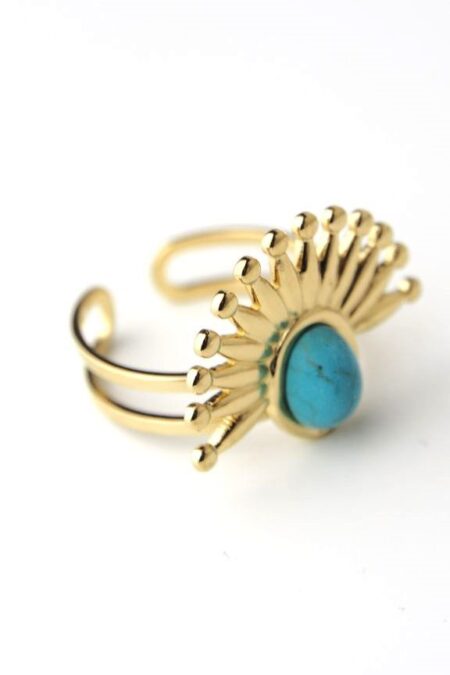 Δαχτυλίδι Victorious σε χρυσό χρώμα με τιρκουάζ πέτρα από ατσάλι One size 8.90€ με ΦΠΑ