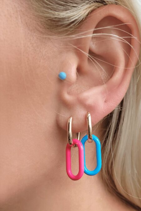 Ατσάλινα trio Σκουλαρίκια set σε χρυσό χρώμα και φούξια σμάλτο