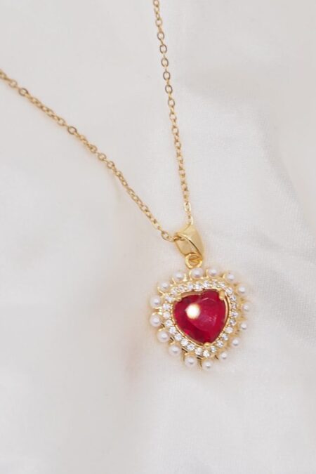 Ατσάλινο κολιέ καρδιά Valentina σε χρυσό χρώμα με κόκκινο κρύσταλλο και λευκά στρασάκια σε χρυσό χρώμα 19.90€ με ΦΠΑ