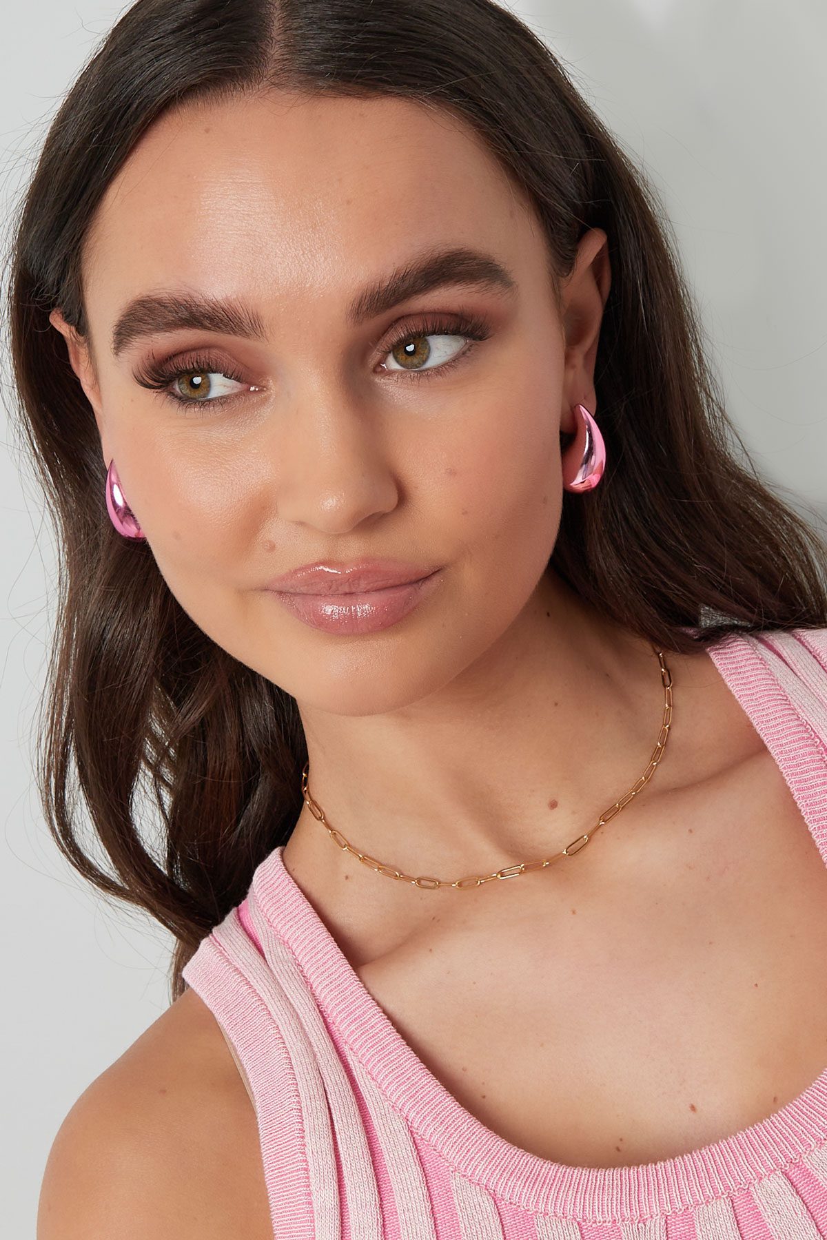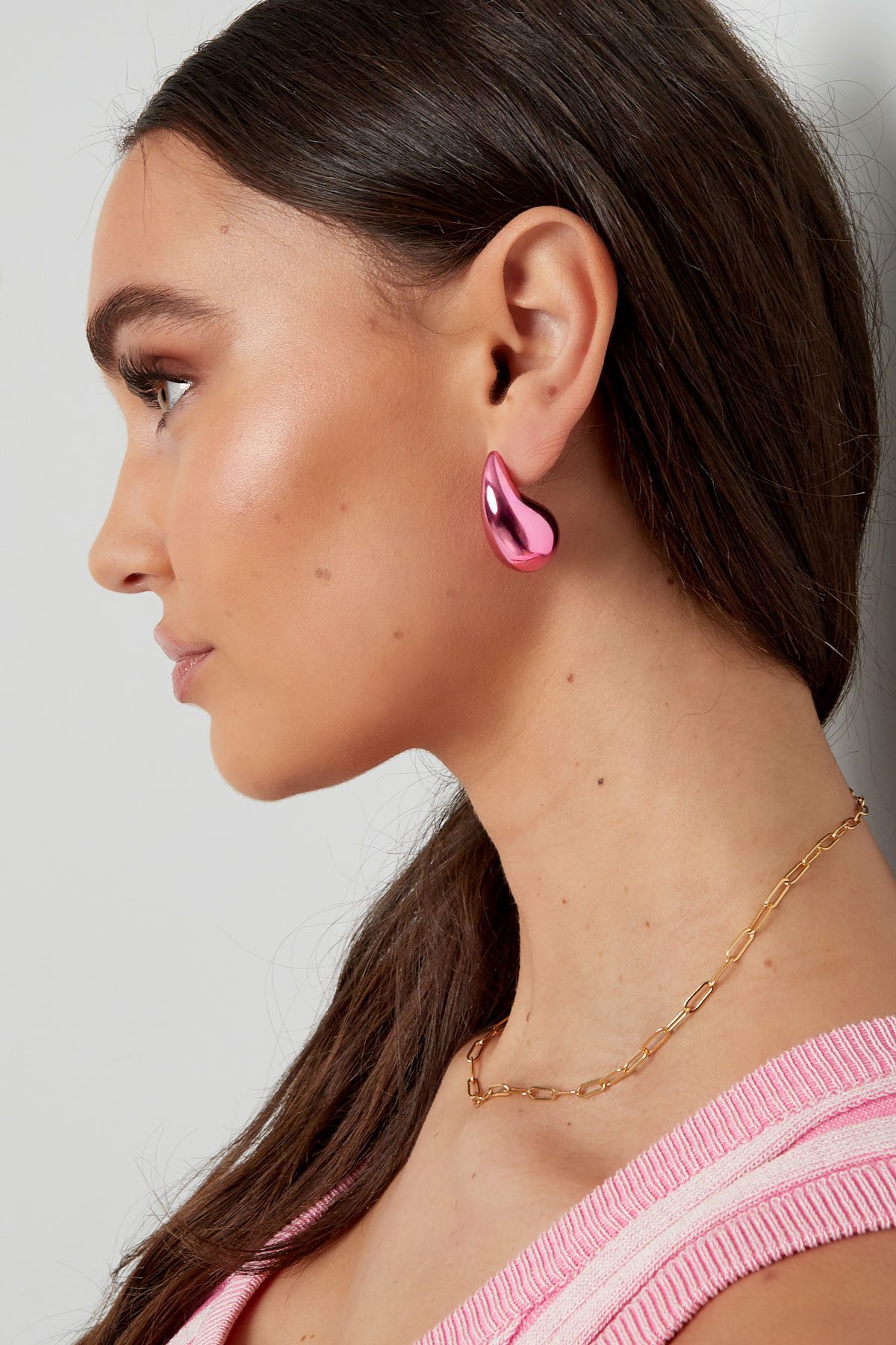 Σκουλαρίκια Eye of the Sun σε ασημί χρώμα και φούξια πέτρα από ατσάλι