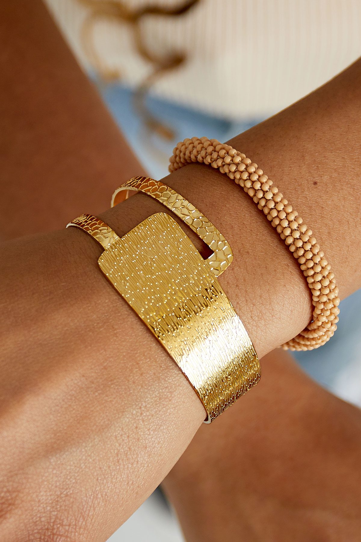 Large structured vintage bracelet – gold
