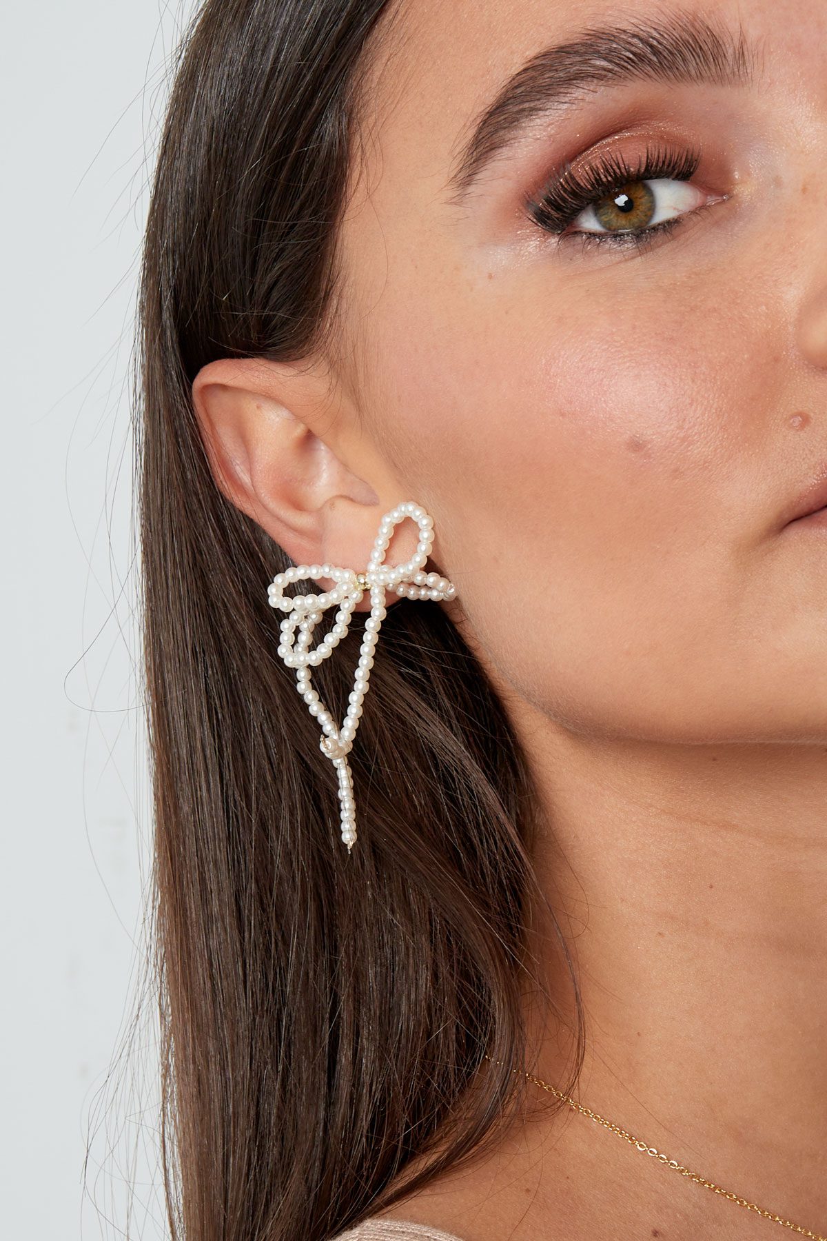 Pearl with double bow earrings
