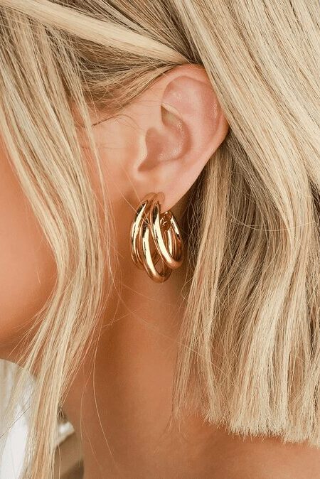 Σκουλαρίκια τριπλοί κρίκοι σε χρυσό χρώμα διαμέτρου 2cm από ατσάλι 14.90€ με ΦΠΑ