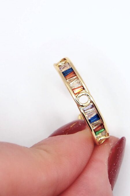 Σκουλαρίκια κρίκοι Rainbow σε χρυσό χρώμα από ορύχαλκο και πολύχρωμα κρύσταλλα