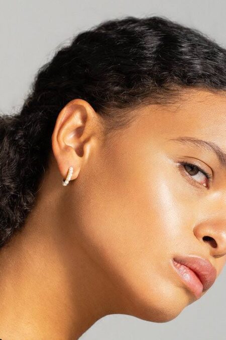 Σκουλαρίκια κρίκοι Iris σε χρυσό χρώμα από ορύχαλκο και λευκά κρύσταλλα 11.90€ με ΦΠΑ